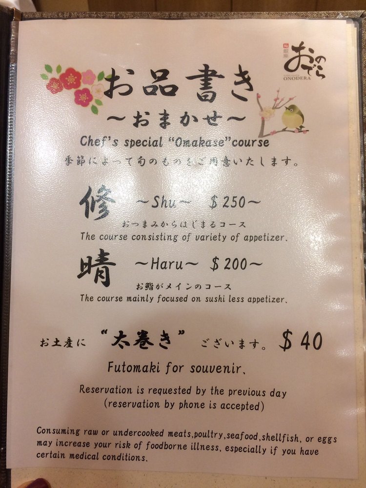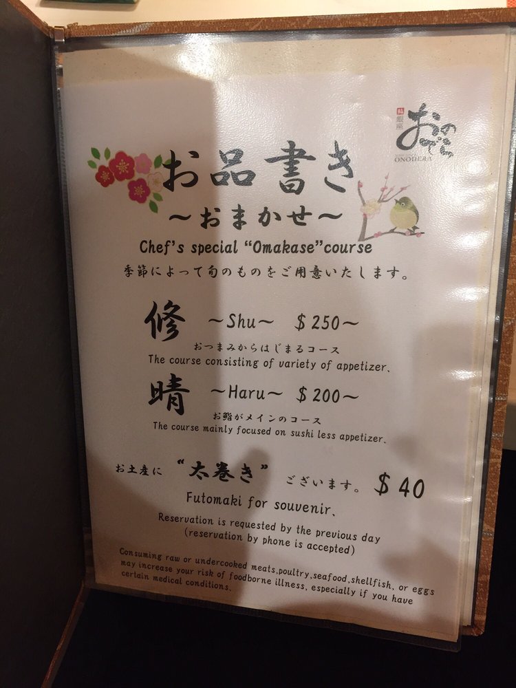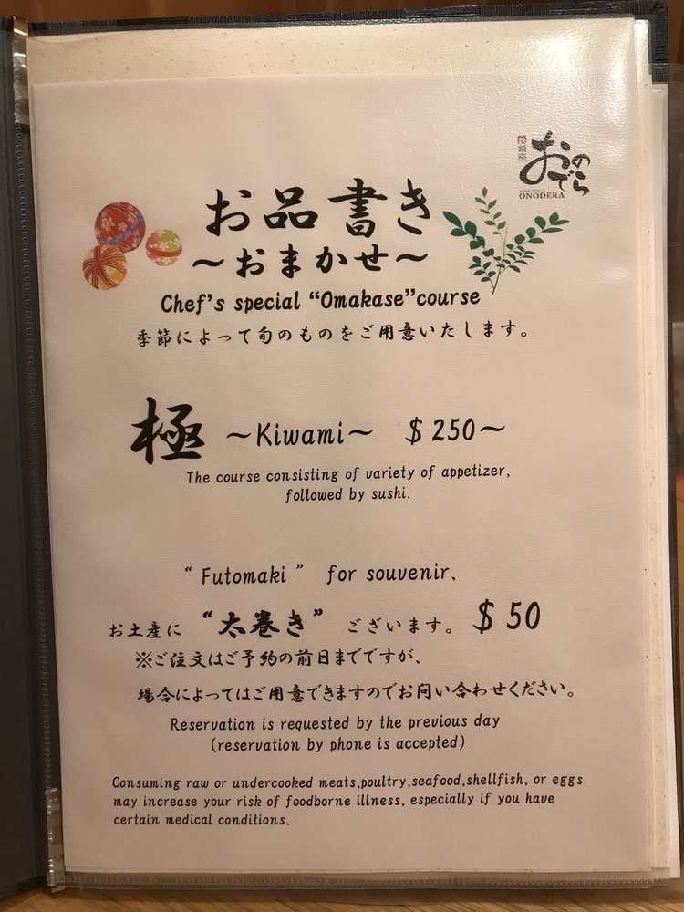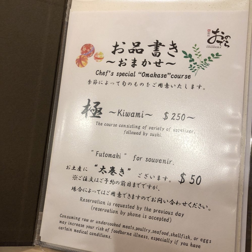 Sushi Ginza Onodera Menu