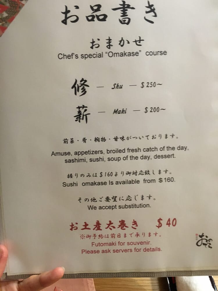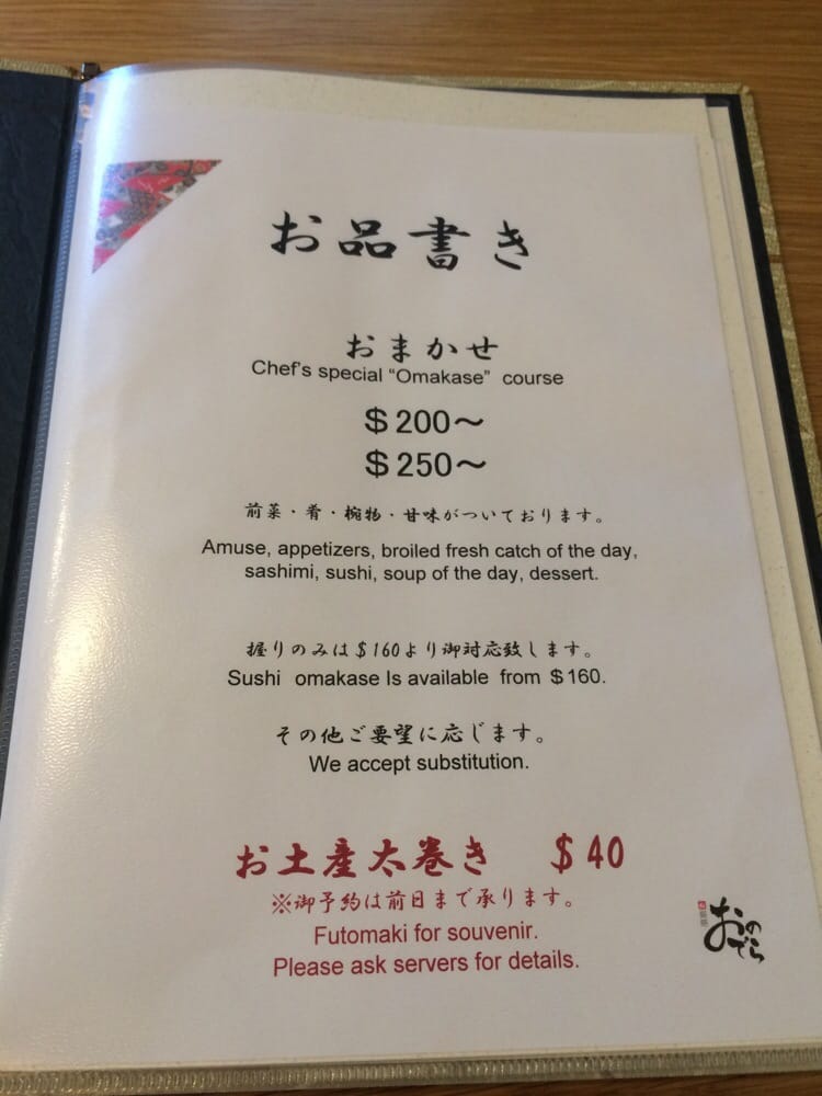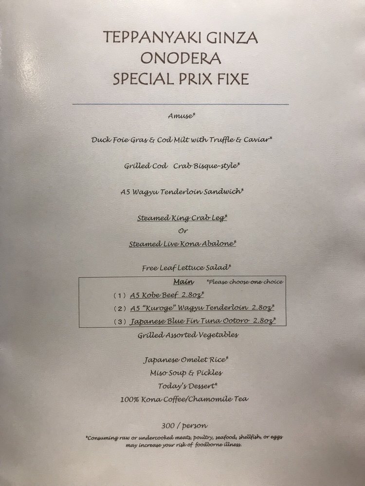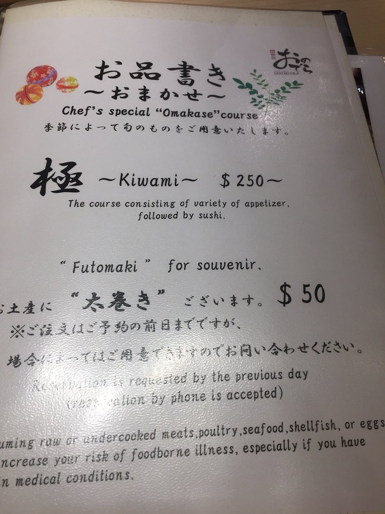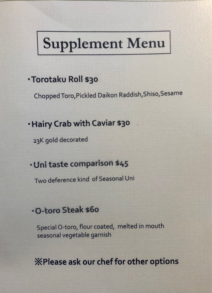 Sushi Ginza Onodera Menu